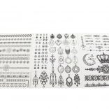 Diverse stencils with ornaments, chains, crowns, and other patterns let you create original combinations for every day.