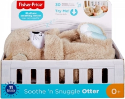 The Soothe 'n Snuggle plush otter is designed for peaceful infant sleep. The rhythmic rise and fall of its tummy mimics natural breathing, which intuitively soothes babies. It also offers up to 30 minutes of melodies, heartbeat sound, white noise, and gentle snores, and can be adjusted to your baby’s current mood.