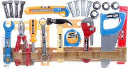Discover a fun and safe plastic tool set for little DIYers that develops fine motor skills, creativity, and imagination. The practical set includes everything needed for pretend repairs—saw, pliers, hammer, pipe wrench, screwdriver, wrench, knife, and a tool organizer belt. Ideal for children aged 3+.