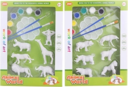 Spark children's imagination with a creative set of paintable safari animals. The set includes plastic figurines to paint, 6 paints, 2 brushes, and a palette. The figurines are about 7 cm, recommended for children aged 3+.