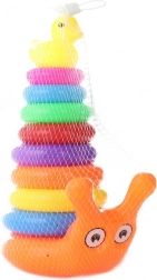 A fun stacking toy for the little ones: a plastic snail-shaped tower with colorful rings and a cheerful duck on top. Supports fine motor skills, hand–eye coordination, and learning colors and sizes. Ideal for children from 12 months.
