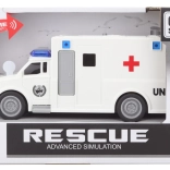 The ambulance is made of durable plastic and is ready to use right away—the batteries are included in the box. Compact dimensions make it great for play at home or on the go.