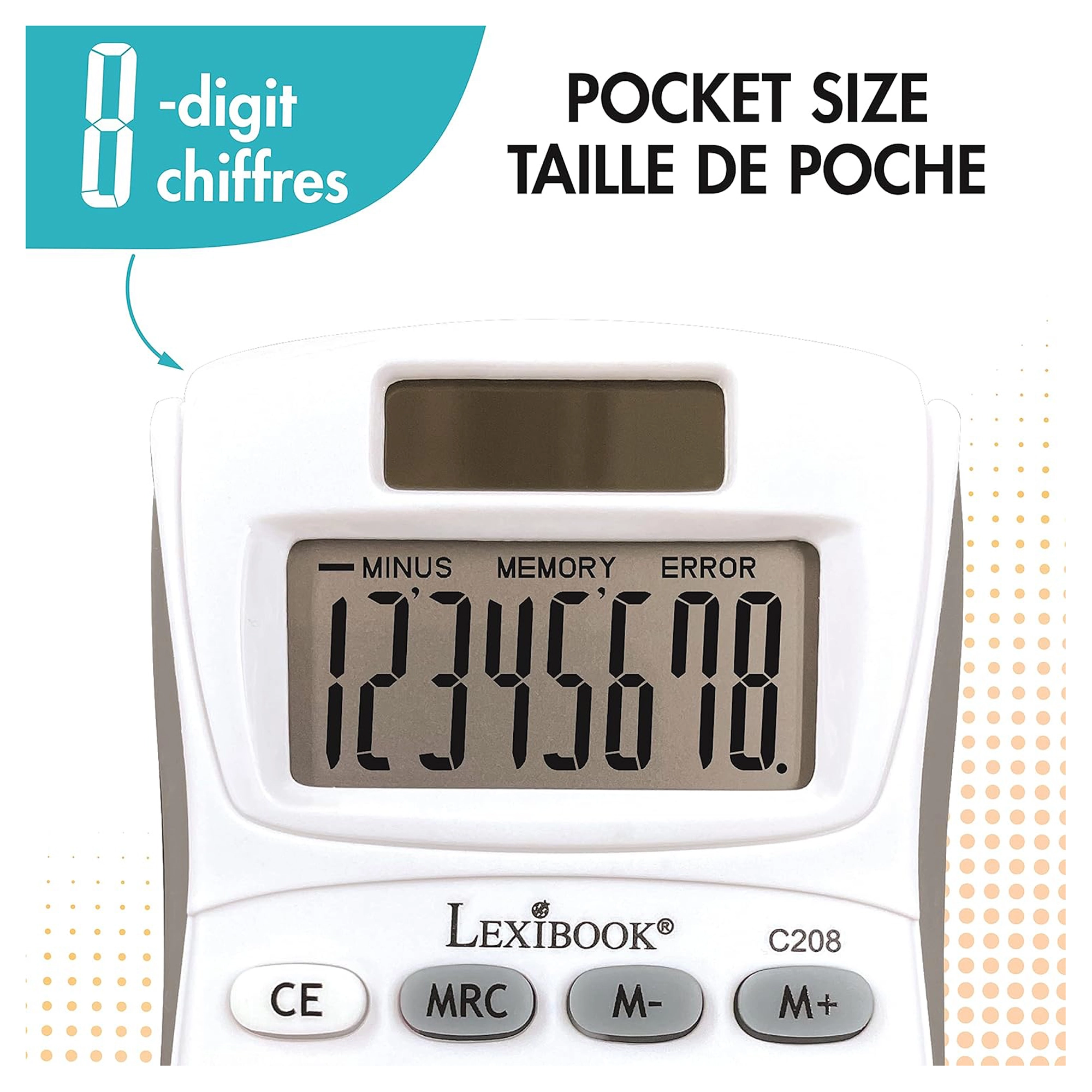 Large single-line display with 8 easy-to-read digits.