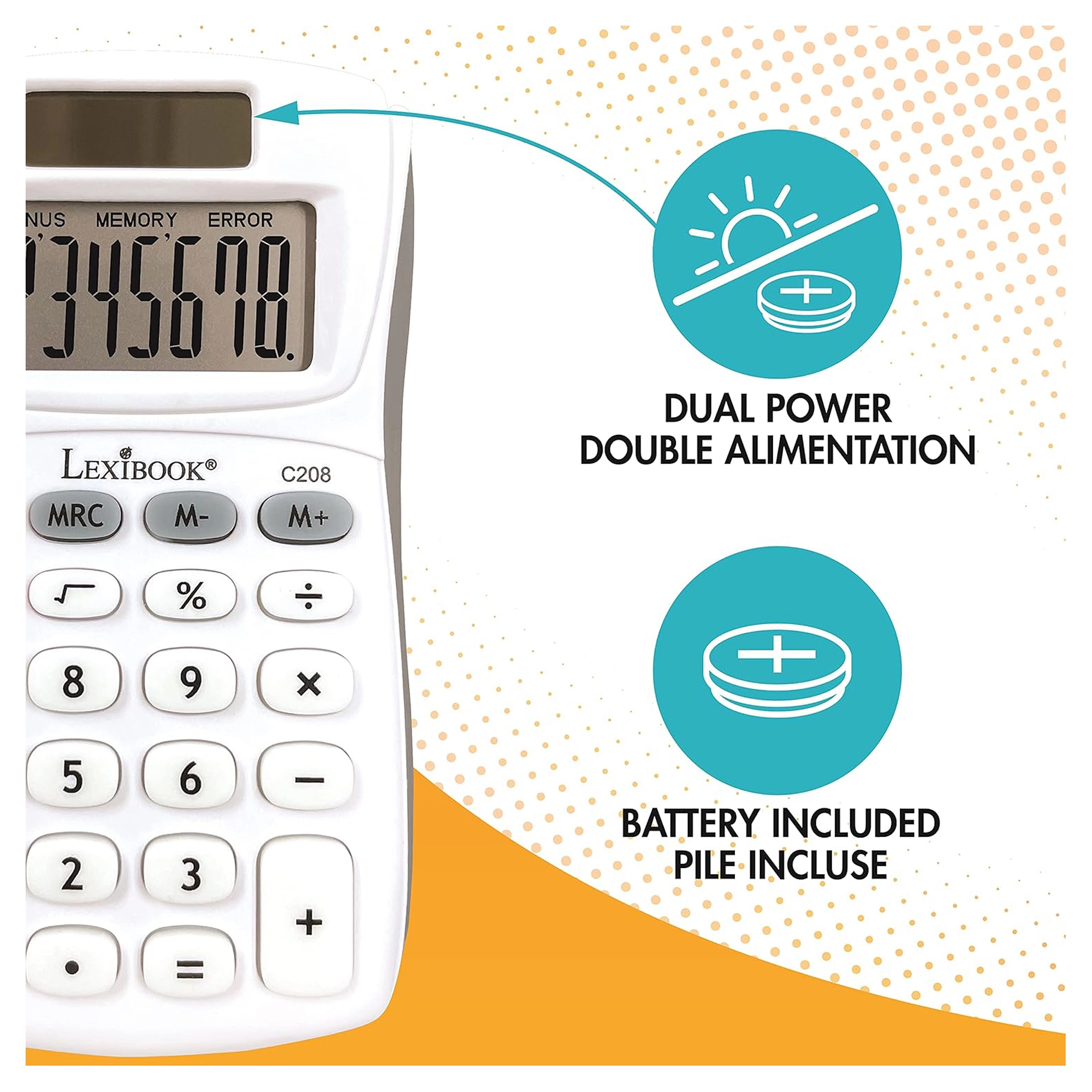 Eco-friendly: solar power with automatic shutoff after a few moments of inactivity.