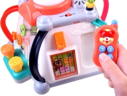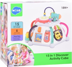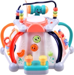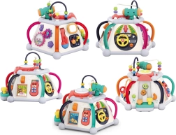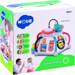 The HOLA multi-cube brings a rich range of activities for little ones. Each side offers a different type of play – from driving a little car to gears with lights and melodies, and even a microphone with a backlit “TV.” The top side hides bead mazes, a light-up drum, and a spot to store the hammer. Everything is designed for small hands and safe exploration.