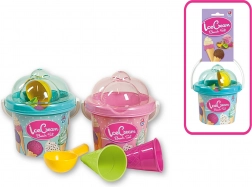Bucket with sundae-shaped lid, ice-cream scoop, 2 cones