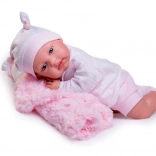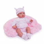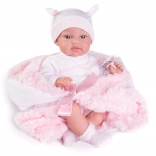 Realistic baby doll by Antonio Juan offers children a Spanish experience of taking care of a baby with a soft cloth body and cooing sounds when you press the tummy.