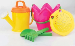 This 5-piece sand set by ANDRONI brings everything kids need for creative play at the beach or playground. A tulip-shaped bucket, watering can, sieve, shovel, and rake support the development of motor skills and imagination. The plastic is made in Italy, strong, flexible, and resistant to cracking during everyday use.