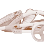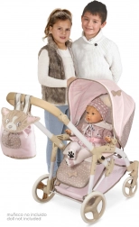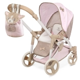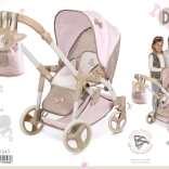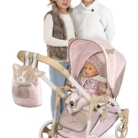 This charming doll stroller in pink–beige tones brings a great blend of design and functionality. Thanks to the adjustable bassinet that easily transforms into a sport seat, kids enjoy more realistic play. It also includes a carry bag for the doll with soft velvet DIDI embroidery and a practical wind flap.
