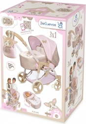 - Foldable 3-in-1 doll stroller (bassinet/sport seat/carry bag)
