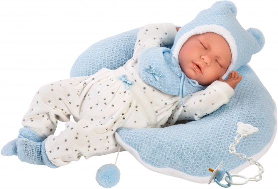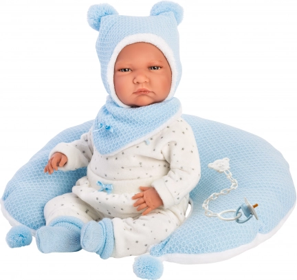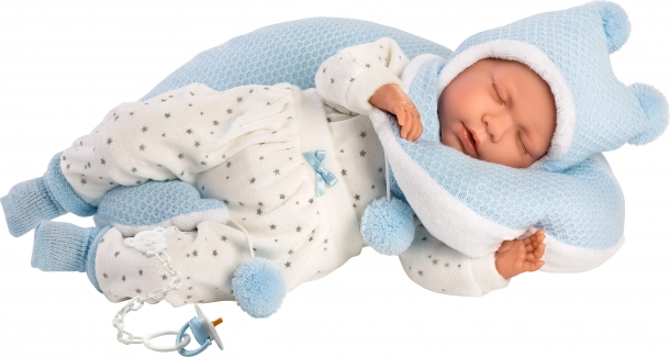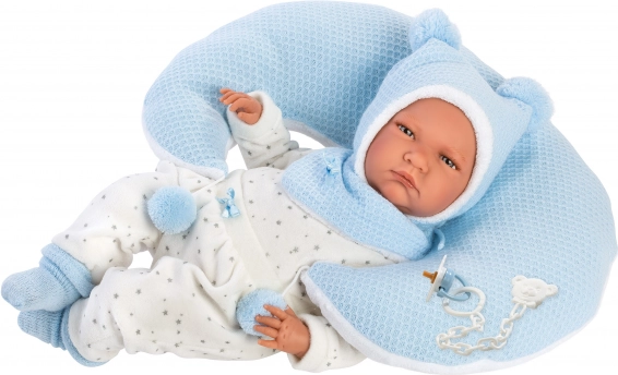 This stylish clothing set for a NEW BORN LLORENS doll in size 40–42 cm brings everything kids need for creative play and caring for a “baby”. Soft textiles in a pleasant blue‑white palette and detailed workmanship ensure a great look and comfortable dressing. The practical nursing pillow supports realistic play and fine motor skills.