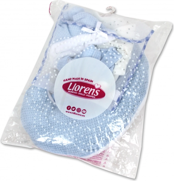 The outfit is made in Spain and comes in a decorative mesh with a cardboard hanger, with the pillow stored in a protective sleeve—ideal as a gift. Thanks to the precise cut, it fits LLORENS dolls 40–42 cm and makes frequent outfit changes easy during everyday play.