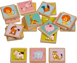 The Animals wooden memory game by LUCY & LEO offers 12 pairs of colorful images of favorite animals. Each card is pleasantly sized, easy for small hands to hold, and thanks to quality wood, it withstands frequent play. Ideal for first memory games, shared moments with parents, and independent discovery.