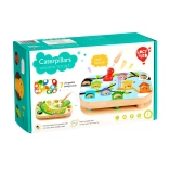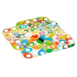 Thanks to 9 interchangeable templates and rotating leaves, the difficulty can be adapted to the child’s age and skills. The game is finished with safe, non-toxic, saliva-resistant paints, and the smaller pieces store easily in a linen pouch.