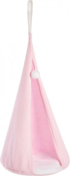 A comfortable textile bag with a loop for hanging gives the doll a cozy place to rest and adds new possibilities to play.