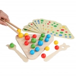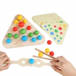 Children sort colored balls using tweezers and a spoon according to the patterns on the cards — great for developing fine motor skills, focus, and color recognition.