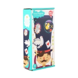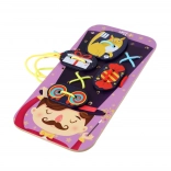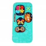 This fun lacing and threading set with a magician theme invites children into a world of imagination. On the large board with the magician’s head and hat, they can use the laces to attach colorful accessories—from a rabbit and coins to mysterious cards. While playing, children practice hand–eye coordination, patience, and creativity.