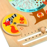 The LUCY & LEO wooden nature calendar is an ideal tool for playful learning. In the center of the board, you’ll find a leafy fruit tree with a 12-month pointer, helping children easily associate winter with snow, spring with blossoms, summer with fruit, and autumn with falling leaves. Children also learn to recognize days of the week, the number of days in a month, weather, temperature, and suitable clothing for different conditions.