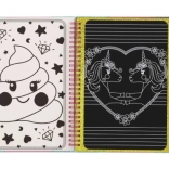 Scratch off the black layer to discover beautiful colorful images that motivate further creativity.