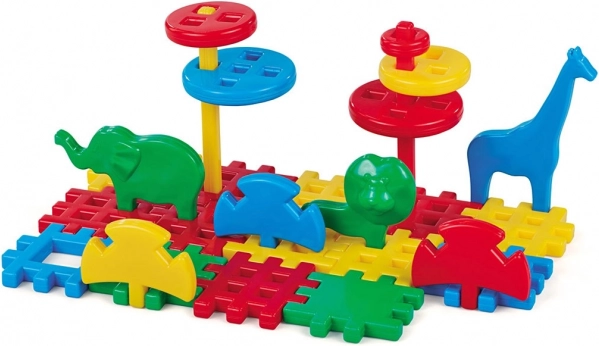 The ZOO set lets children create their own small zoo environment with animals like an elephant, lion, giraffe, and rhinoceros. Thanks to the simple connections, building is intuitive and fun—perfect for developing hand–eye coordination and logical thinking.