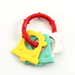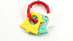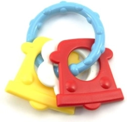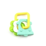 The teether includes various shapes and colors, which support the development of the child's visual and motor skills.