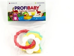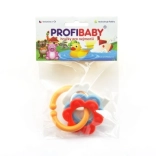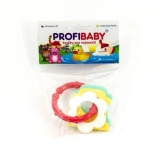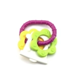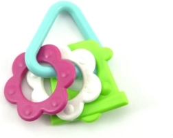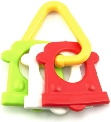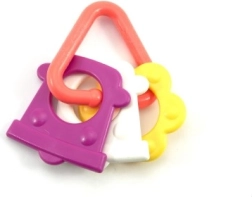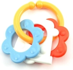 Our colorful plastic teether is designed for small hands that easily grip each of its shapes. Thanks to its diversity, your baby will stimulate both senses and gums.