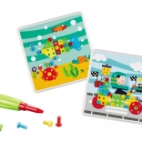 Dive into the world of creativity and fun with our mosaic construction set, which includes everything you need to create amazing pictures. With 116 multi-colored pieces, your children can create their own mosaics while improving their color recognition and fine motor skills.
