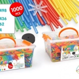 The Construction Kit of Little Geniuses with small straws allows children to create different shapes using colorful connecting sticks and cruciform connectors.