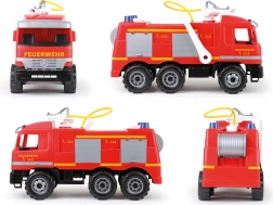 The giant LENA Giga Trucks Actros fire engine brings realistic action for little heroes. A sturdy build with galvanized steel axles, a rotating roof-mounted nozzle, and a strong piston pump ensures great fun at home or in the garden.