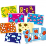 With puzzle triplets, made up of pictures, children can easily grasp basic math concepts in a playful setting. This set is ideal for developing logical thinking and cognitive abilities.