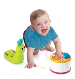 Fun snail that easily transforms into a shaping sorter and drum. The colorful toy stimulates the senses and develops your child's manual skills.