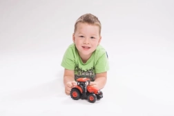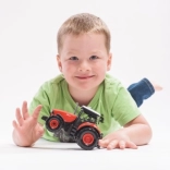 A realistic plastic ZETOR tractor for little farmers featuring a flywheel for smooth riding, light effects, and sounds of reversing, horn, and engine start. The compact 14 cm size fits perfectly in small hands and delights kids from 3 years. Batteries 3× AG13 are included, so the fun can start right away.