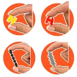 Large building set for children aged 4+ with 301 pieces in 27 shapes develops imagination, logic, and fine motor skills. Thanks to special elements you can build moving mechanisms, vehicles, and buildings. Soft pieces made of recycled TPE are pleasant to hold, safe BPA- and phthalate-free, and meet the EN 71 standard. A step-by-step manual and a practical storage bag are included. Ideal for STEAM learning through play.