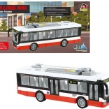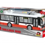 This detailed trolleybus gives kids an authentic taste of urban transport. The toy plays stop announcements in Czech (Main Station, City Theatre, Zoo) and features attractive light effects. With the friction drive, just push the trolleybus and it will roll forward.