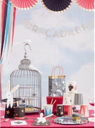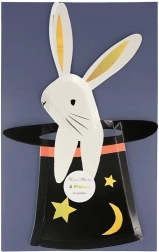 Discover the charming Abracadabra paper plates from MERI MERI, turning your celebration into a magical show. The rabbit-in-hat motif delights both children and adults, and fits perfectly with magic- or circus-themed decor. Thanks to careful workmanship and an attractive look, these plates are not only practical but also decorative.