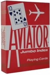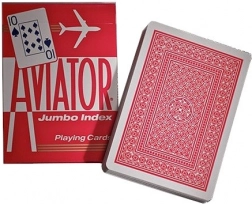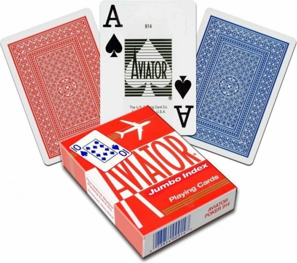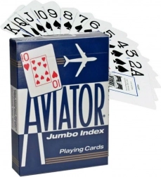 Aviator Jumbo Index cards are designed with a classic pattern and Aviator branding, providing high quality and longevity due to the cardboard with a plastic coating. They are a great choice for game lovers who appreciate their durability, ensuring they last longer than regular playing cards.