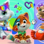 The maxi puzzle consists of 24 sturdy, easy-to-grip pieces tailored to small children’s hands. The popular Happy Cats theme from 44 CATS encourages kids to assemble and supports their concentration, patience, and perception of shapes and colors.