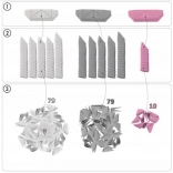 The patented piece shape with a marked fold line lets you create the basic module in three steps and easily connect it with the others.