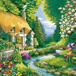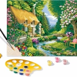 The CreArt set includes everything you need to paint an impressive picture of a tranquil house by the river, even with no prior experience. Thanks to the preprinted colored boundaries instead of black outlines, edges and transitions look more natural, giving the finished painting an even more professional appearance.