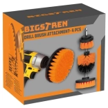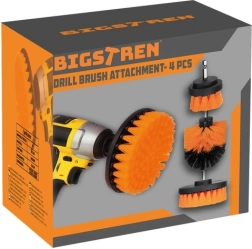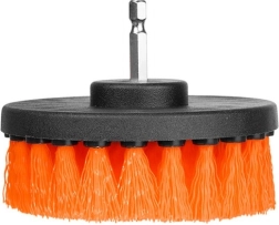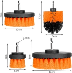 Universal brush set for drill and cordless screwdriver for fast, effective cleaning. Medium-stiff nylon bristles tackle dirt in the bathroom and workshop without scratching fixtures. Thanks to the different shapes and sizes, you can easily choose the right brush for the task. Universal shank, medium-stiff nylon bristles, 4 pieces in the pack, suitable for tiles, grout, bathtubs, and car wheels.