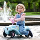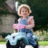 The iconic BIG Bobby Car Classic ride-on in a unique turquoise color brings safe fun and motor skill development from 12 months. An ergonomic seat, a steering wheel with horn, and a low center of gravity ensure a comfortable and stable ride indoors and outdoors. Plastic wheels, a pivoting front axle, a front towing eye, and a rear hook for a trailer expand play possibilities. Made in Germany, maximum load 50 kg.