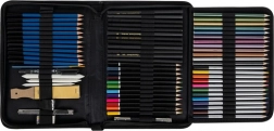 This all-round set for drawing, painting, and sketching offers a rich selection of graphite and charcoal pencils, watercolor, metallic, and classic colored pencils, along with practical tools for shading and fine details. The sturdy fabric case keeps everything organized and ready to use at home or on the go.