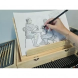 A complete 83‑piece art set in a wooden case with a built‑in easel for painting at home or on the go. Inside you’ll find everything you need: acrylic and watercolor paints, brushes, graphite pencils of various hardness, pastels, colored pencils, a palette, and a sketchbook. The practical wooden case with a handle and 2 pull‑out drawers keeps everything tidy with quick access to all tools.