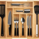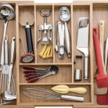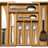 The smart sliding system lets you expand the organizer from 6 to 8 compartments. Easily create space for small forks, knives, and other accessories.