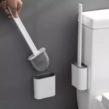 The compact RUHHY silicone toilet brush with holder offers hygienic and gentle cleaning without scratching, a flexible head for every corner, and two storage options – free-standing or adhesive mount without drilling. The modern white–gray design fits perfectly into any bathroom.