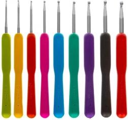 The set includes 21 colorful hooks of various sizes with an ergonomic design for easy and comfortable use.