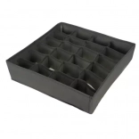 A practical set of four organizers in different sizes keeps your drawers and wardrobes perfectly organized. Each box features firmly reinforced walls and smartly arranged compartments for specific clothing types — from bras and panties to socks or ties. The breathable non-woven fabric prevents moisture accumulation and helps keep clothes fresh.
