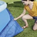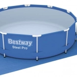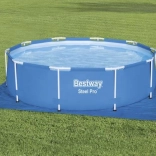The robust blue BESTWAY mat extends the life of your pool and increases comfort while swimming. The generous 335 × 335 cm format allows you to cover not only the area under the pool but also the surroundings, so you bring less grass, sand, and leaves into the water. The mat is suitable for framed pools and self-supporting pools with an inflatable ring and is easy to spread out on a lawn or a hardened surface.