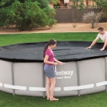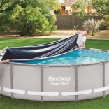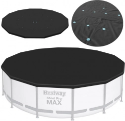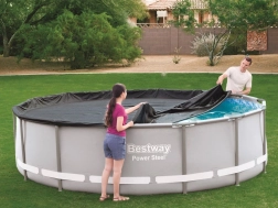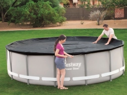 A practical, durable cover for 427 cm round frame pools keeps your water cleaner for longer and ready for swimming. The black cover improves thermal insulation, reduces contamination, and the cords let you fasten it easily and securely so it won’t be blown away by the wind.