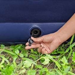 Thanks to the safety valve, inflating, adjusting pressure, and deflating take just moments. The mattress is suitable for indoor and outdoor use, perfect for guests, the cottage, or camping. The package includes a waterproof repair patch for quick fixes of minor damage.